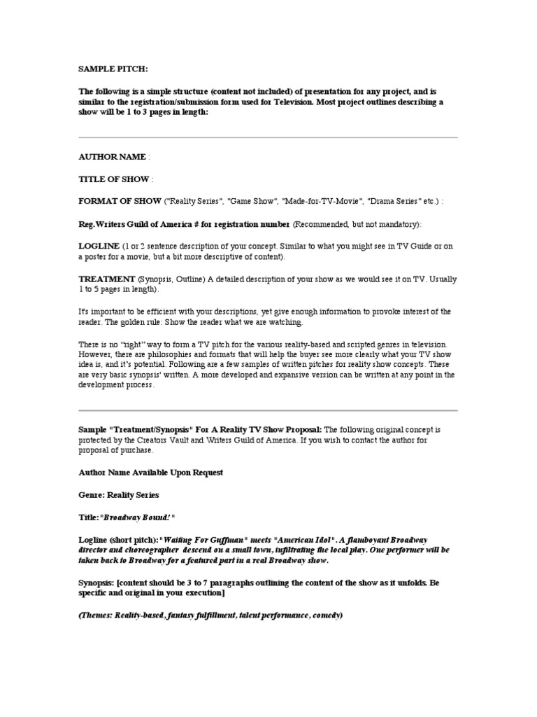 Learn how and team up with us to get your concepts on tv. How to create a tv show pitch bible that sells with free template pitch presentation bible blade runner. A successful tv show pitch determines if a tv series will move from an initial idea into development and production. Having some sort of personal connection to the show will help you put in the work needed to make it a reality and will come across better during your pitch. There's a reason why most of the hit reality tv series are focused on unique families and businesses, and you might only have to look at your own world to discover a family or business with the right dynamics and characters to. Companies rarely buy based on pitches unless it involves a celeb, etc. Ultimate guide by 2 successful reality producers. It is the only pitch platform online to have discovered and delivered pitches that have gone on to be produced and aired globally on major cable networks. You have a great television show idea. Reality usually highlights personal drama and if you have a great idea for a reality show you're one step ahead of the rest of us. Why success pitching reality tv shows and doc series is giving biagio separation anxiety. This is what sets it apart from other types of shows, and this is what gives it its lure. Think of the consistent popularity of the singing competition in recent years.